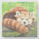 Pintura aquosa de um panda vermelho em um tronco de árvore antigo.