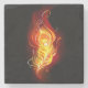 Pena de pavão brilhante feita de fogo e chamas sobre fundo negro.