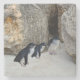 Imagem na praia é uma caverna de rocha onde três pinguins fizeram uma casa