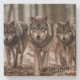 A porta copos de Sandstone é mostrada com uma impressão fotográfica de um bando de lobos selvagens no Parque Yellowstone. Personalize este item ou comprar como está. Imagem licenciada
