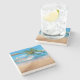 Porta copos de pedra mostrada com uma impressão fotográfica de uma bela cena de praia tropical. Personalize este item ou comprar como está. Foto de ações