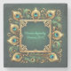 Porta-copo De Pedra Quadro Pavão Dourado Verde Personalizável