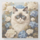 Porta-copo De Pedra Ragdoll Cat Com Flores De Hydrangea Azuis