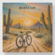 pintura por sol de uma bicicleta no deserto cercada por cactos