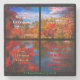 Uma forte porta copos de mármore mostra os versos- Regozijem-se cada vez mais, Reze sem parar, & Em cada coisa que dá obrigados: pois esta é a vontade de Deus no Cristo Jesus que lhe diz respeito. (I Salónica 5:16-18). Um sotaque inspirador de outono para a sua cozinha, jantar ou sala de estar.