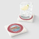 Projetado com base na pintura acrílica de Rockport Harbor em Massachusetts por Farida Greenfield. Uma encantadora captura de Rockport Harbor, com seus edifícios coloridos, vista do píer e barcos atracando no porto. Rockport é uma cidade litoral no Condado de Essex, Massachusetts, Estados Unidos. O design tem um círculo vermelho escuro no lado externo e textos que podem ser personalizados no lado superior e inferior.