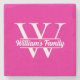 Porta-copo De Pedra Rosa e Branco | Monograma Simples de Nome de Famíl