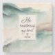 A porta copos de pedra da Escritura Inspiracional retrata uma simples abstrato de cor d'água em tons naturais de azul, bronzeado, preto e marrom. Apresenta uma parte da Bíblia Verse Psalm 23:4, "Ele restaura minha alma."