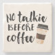 Não consegue estombar o pensamento de conversa fiada antes da sua dose matinal de cafeína? Deixe essa porta copos engraçada falar por você. O design apresenta "No Talkie Before Coffee" em texto preto no estilo manuscrito com uma ilustração de uma xícara de café.