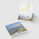 Flores cor-de-rosa no penhasco rochoso pelo lago azul