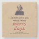 Este design, ao estilo da safra, contra um fundo castanho-kraft, tem a aparência de que tem circulado desde o Renascimento. E de certa forma tem: Ele apresenta uma frase maravilhosa de Shakespeare de "As Esposas Felizes de Windsor." A citação é: "O céu lhe dá muitos, muitos dias felizes." Seria um excelente para os fazendas, aniversários, aniversários, noivados, aposentadorias e melhores desejos de todo tipo. A citação é feita em tipografia antiga vintage e emparelhada com um retrato antigo de Shakespeare. Perfeito para caras e gais, solteiros e casais, e para quem aprecia a academia escura ou a estética da academia leve.
