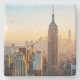 O sol se pondo sobre Nova York lançando uma luz de ouro sobre a cidade.