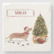 Porta-copo De Pedra Tan Dachshund Engraçado Cachorro de Natal com Árvo