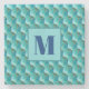 This design features a repeating, diagonal pattern, in shades of teal, azure, and sea blue. Initial and center block are optional.