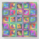 A imagem apresenta uma coleção vibrante de silhuetas de cão organizadas em um padrão de prancha de xadrez. Cada cão exibe uma combinação única de cores e padrões, criando uma composição divertida e viva.