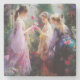 Uma pintura gerada por IA de três meninas brincando num jardim floral