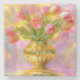 Porta-copo De Pedra Tulipas Rosa Vibrantes em Vase Ouro