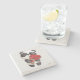 Uma porta copos de pedra com um adorável desenho de aquarela. Um adorável urso panda preto e branco carregando um buquê de rosas. Cinza com fundo branco de bolinhas.