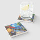 A beautiful European looking village on Valentine's Day, with a couple sitting in front of a cafe under a Starry Night looking sky in a similar style to Van Gogh.