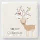 Porta-copo De Pedra Veado de Natal Branco com Aves