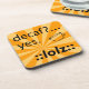Decaf LOLZ. A pergunta é pedida o "Decaf?" A resposta é dada "sim" sarcàstica como mostrada pelo "LOLZ" na parte inferior. Texto preto com um copo de café preto. Algum design tem uma explosão da laranja do dois-tom dos raios como o fundo.