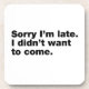 Porta-copo Desculpe o atraso. Eu não queria vir