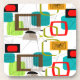 Design abstrato moderno do século médio em cores Teal, vermelha, dourada, preta e verde limão. Artista reproduziu design baseado em uma amostra de tecido da era atômica.