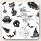 Itens de Halloween desenhados em papel e rastreados no Illustrator para criar o padrão.