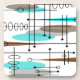 Era atômica inspirada, design moderna do século Médio em cores de choro, marrom e preto. Artista recriou a design atômica baseada em uma amostra de tecido daquela época.
