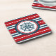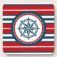 Design náutico com decoração em forma de bússola em fundo listrado vermelho, azul e branco