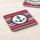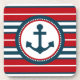 Design náutico com decoração em forma redonda com âncora sobre fundo listrado vermelho, azul e branco