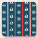 Design náutica com barco à vela e decoração de bússolas em fundo listrado vermelho, azul e branco