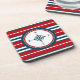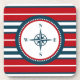 Design náutico com decoração em forma de bússola em fundo listrado vermelho, azul e branco