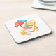 Un design estival et coloré avec chaise longue, parasol rayé, chapeau de paille, étoile de mer et panier fleuri. Style aquarelle doux et joyeux, parfait pour célébrer les joies de l'été.