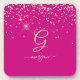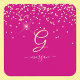 Um design de tendência de brilho dourado com monograma dourado e nome de script branco em fundo fuchsia.