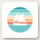 Design do pôr do sol no estilo da década de 1980 em efeito angustiado com centro de ilustração de veleiro. Linhas transparentes e silhueta de veleiro para se alterar para uma cor de fundo de sua escolha ou manter como branco.