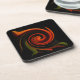 Este grupo de portas copos da cortiça das belas artes caracteriza um teste padrão circular do redemoinho em cores brilhantes de vermelho, de alaranjado, de verde, de amarelo, de marrom e de preto. O design abstrato é uma ideia impressionista da energia de roda do redemoinho da criação.
