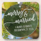 Celebre o amor e o espírito de feriado com este adorável ornamento de vidro, com a frase "feliz e casado". Suspenso por uma fita de cetim prateado, o ornamento exibe um roteiro elegante e branco e detalhes personalizados incluindo os nomes "Laura & David" e a data "25 de dezembro de 2025." O vidro transparente capta reflexos das agulhas de pinheiro ao redor, acrescentando um toque festivo. Perfeito para comemorar um casamento no inverno ou aniversário, este ornamento combina romance e encanto sazonal. O seu design eterno e delicado artesanato fazem dele um bem-estar apreciado nos próximos anos.