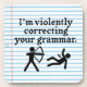 Vocês provavelmente viram a frase popular nerd, "Estou silenciosamente corrigindo sua gramática." Esta porcaria engraçada de porta copos de design de leva-a a um novo nível. Diz, "Estou a corrigir violentamente a tua gramática" numa letra de máquina de escrever e mostra uma figura de palito a disparar outra figura de palito com uma seta. O fundo parece papel revestido. Estas portas copos são perfeitas para professores de inglês, bibliotecários, escritores, editores e qualquer esnobe gramatical orgulhoso.