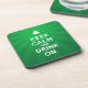 Rua, portas copos de cortiça do Dia de Patrick, com shamrock irlandês e slogan engraçado - Mantenha Calma e Beba - paródia da poster de propaganda britânica da Segunda Guerra Mundial. Uma porta copos divertida para sua pinta no Dia de São Patrick, em verde e branco.