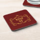 O conjunto de portas copos engraçado para o povo do país apresenta o texto "silêncio" dourado e o quadro do rico em fundo vermelho escuro.