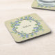 Porta copos adorável, decorativa, com um bege bronzeado, fundo listrado e uma coroa de flores azuis. Personalize com seu nome/destinatário ou iniciais. Vitoriano sente design.