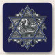 Estrela Elegante de David com símbolo tradicional de hexagrama azul e branco elogiado por um ornamentado barroco de fundo prateado. Arte de Margaret Loftin Whiting.