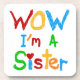Design de texto multicores colorida WOW Eu sou uma camiseta Irmã, capuzes, canecas, botões, cartões, adesivos, guardas, ornamentos, chaveiros e outros presentes de excelente e roupa para irmãs!