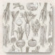 Farmer's market vegetable pattern, originally drawn in ink. Includes carrots, beet, spinach, parsnip, green beans, leek, radish, onion, tomato and garlic.