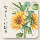 Este lindo gráfico de girassol sobre um fundo antigo de papel bege faz um conjunto de portas copos alegre e colorido. A frase BEM-VINDO também pode ser editada para sua frase desejada se você escolher.