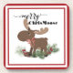 Este alce branco é adorável com um arco de fita vermelha amarrado em seu pescoço. Ele está entre pinheiros e bagas. O texto acima diz "Feliz ChrisMoose". Estas são as portas copos de Natal mais bonitas. Eles também fariam um presente de excelente!