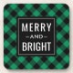 design de porta copos de na moda de natal apresenta um padrão de xadrez de verificação de bufalos esmeralda verde e preto com Feliz e design de tipografia moderna Bright em preto e branco.
