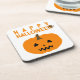 Uma porta copos plástica de duro de Halloween com uma abóbora e um texto de 'Happy Halloween' em branco. Personalize o fundo branco entre outras opções.