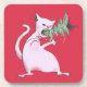 Portas copos de Natal engraçadas com uma ilustração digital hilariante de um gato gordo branco-mau comendo uma árvore de Natal sobre fundo vermelho vibrante. Sabe o que acontece no Natal todo solteiro ano. Os gatos adoram estragar a decoração de férias.